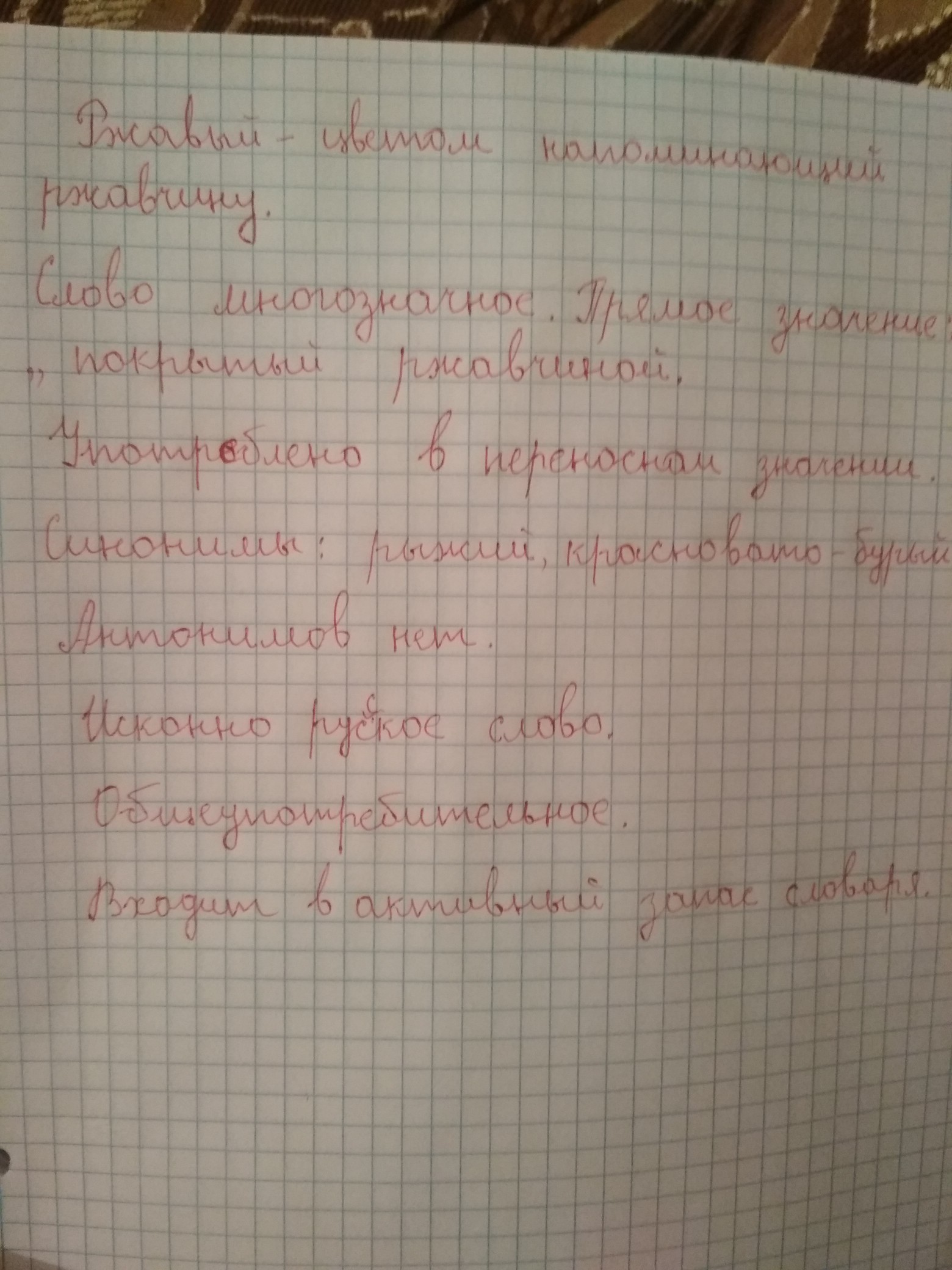 Ржавый - (переносное значение) цвет ржавого железам или ржавая вода.