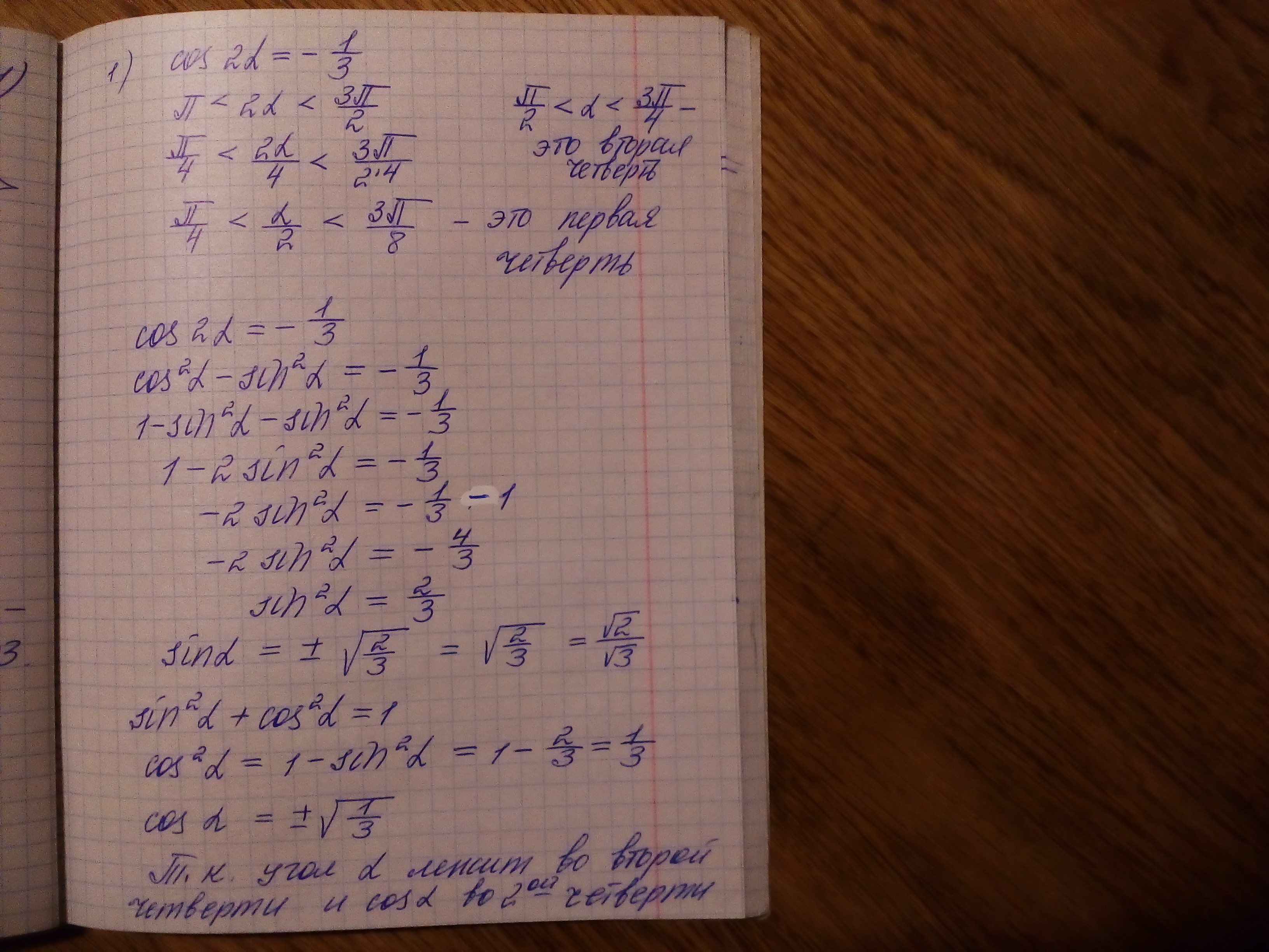 π<2a<3π/2⇒ π/2<a<3π/4⇒ a∈II четверти