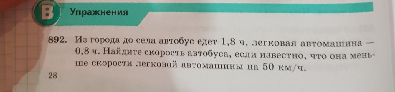 1.8х=0.8(х+50) <=> 1.8x=0.8x+0.8*50 <=>1.8x-0.8x=40 <=>x=40, получаем, что скорость автобуса равна 40 км/ч