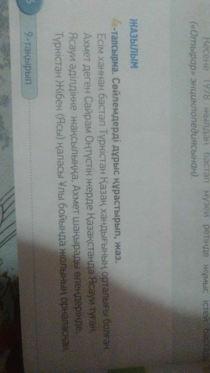 сойлемдерды дурыс курыстырып Жаз . Есим ханнан бастап Туркистан казак хандыгынын орталыгы болган