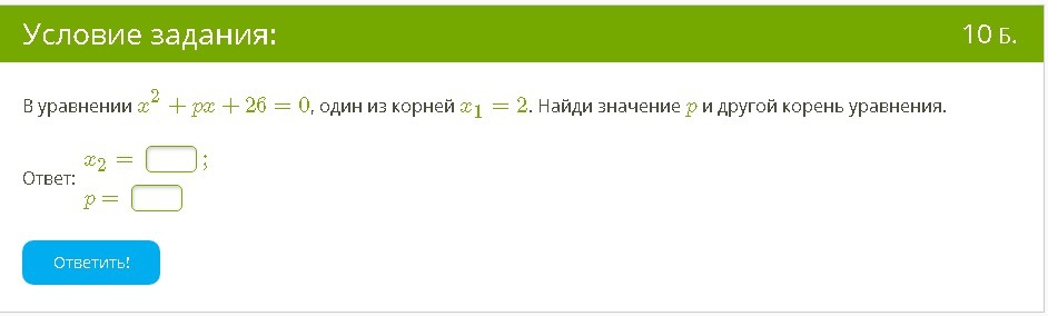 x₂ = 26 : x₁ = 26 : 2 = 13
