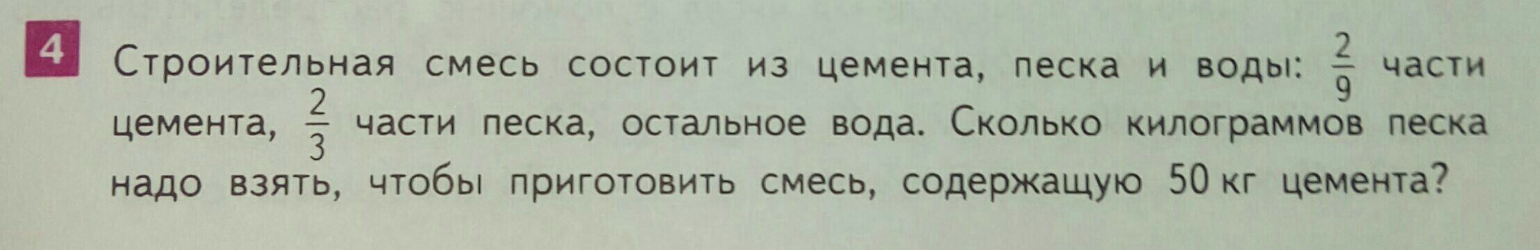 Цемент 2/9 части, песок 2/3 части = 6/9 частей,