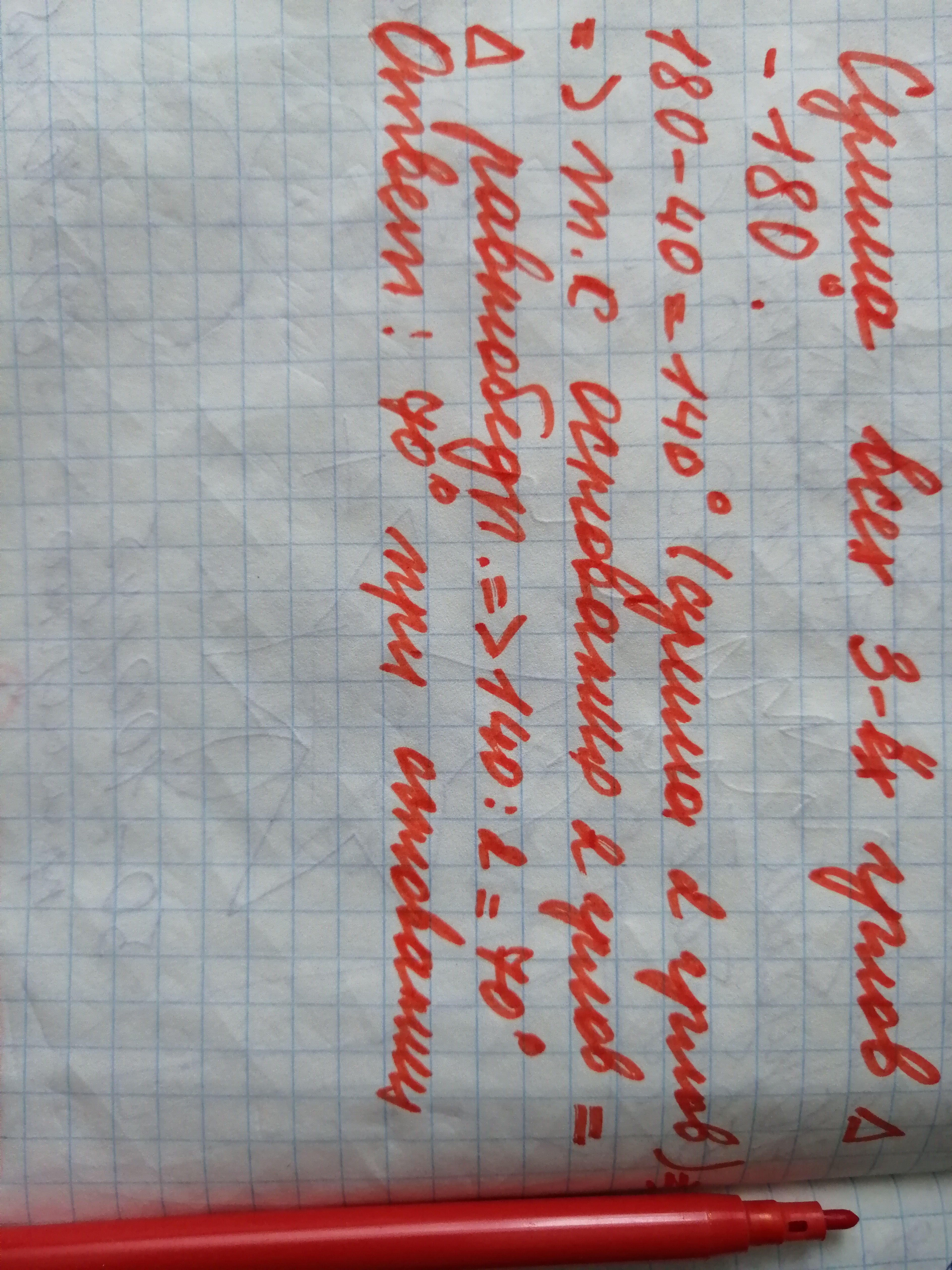 сумма углов тр-ка=180, тогда 180-40=140, тр-к равнобедренный, значит угол В и угол С равны (В=С) 140÷2=70 градусов угол при основании