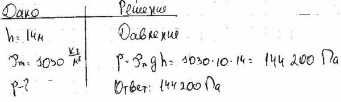 р=1020*10*14=142800 Па =142,8 кПа