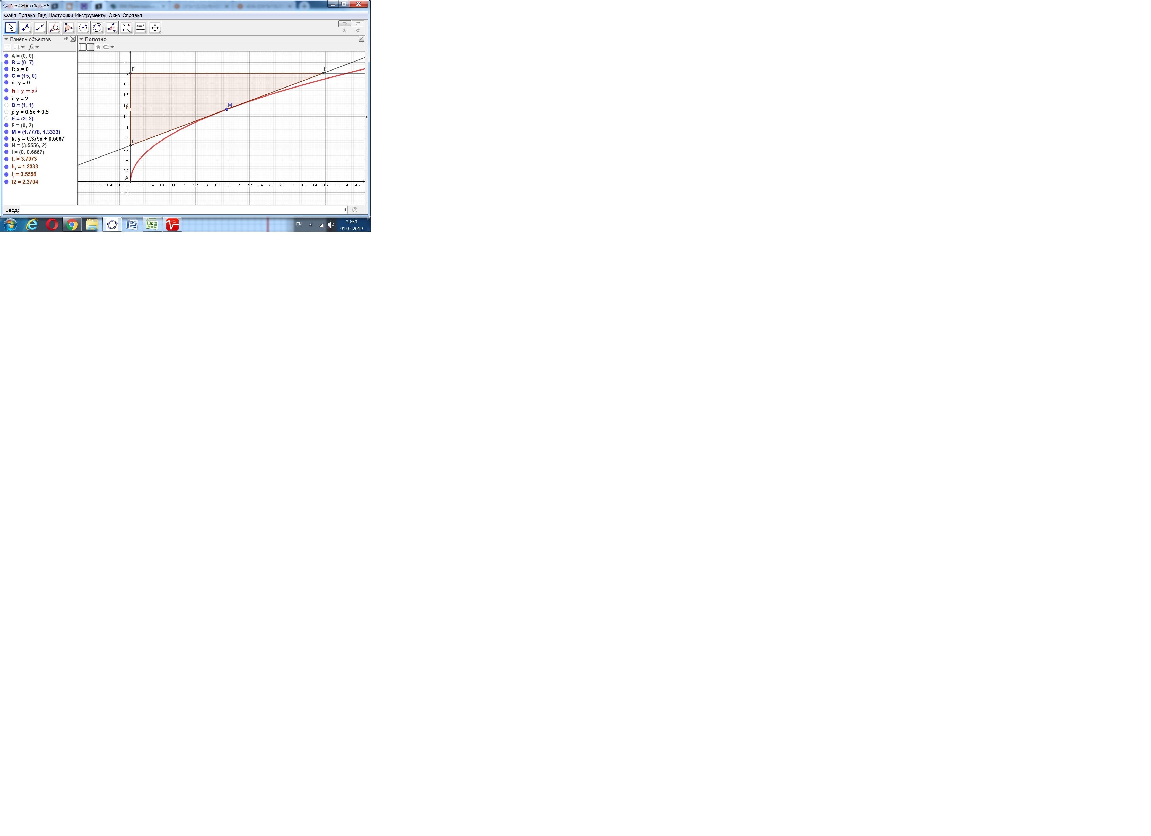 Теперь переходим к треугольнику, образованному этой касательной, осью ординат и прямой у = 2. Его катеты a b равны:
