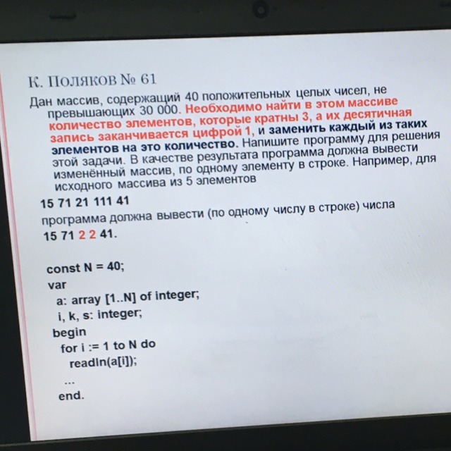 if (m[i] mod 3 = 0) and (m[i] mod 10 = 1) and (kol <> 0) then