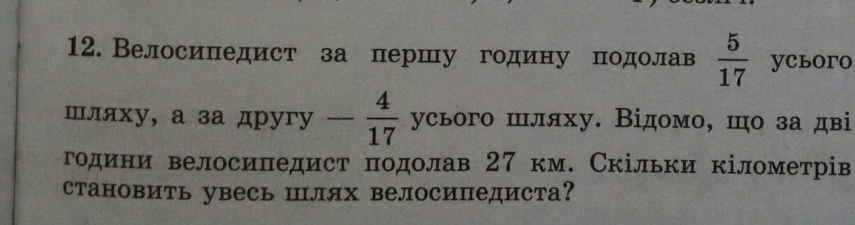 5/17+4/17=9/17 всього шляху проїхав за 2 години