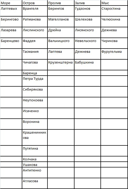 Выпишите в тетрадь географические объекты названные в честь русских Первопроходцев на побережье и в пределах Северного Ледовитого и Тихого океанов для этого Воспользуйтесь физическими картами атласа Результаты работы Оформите виде таблицы