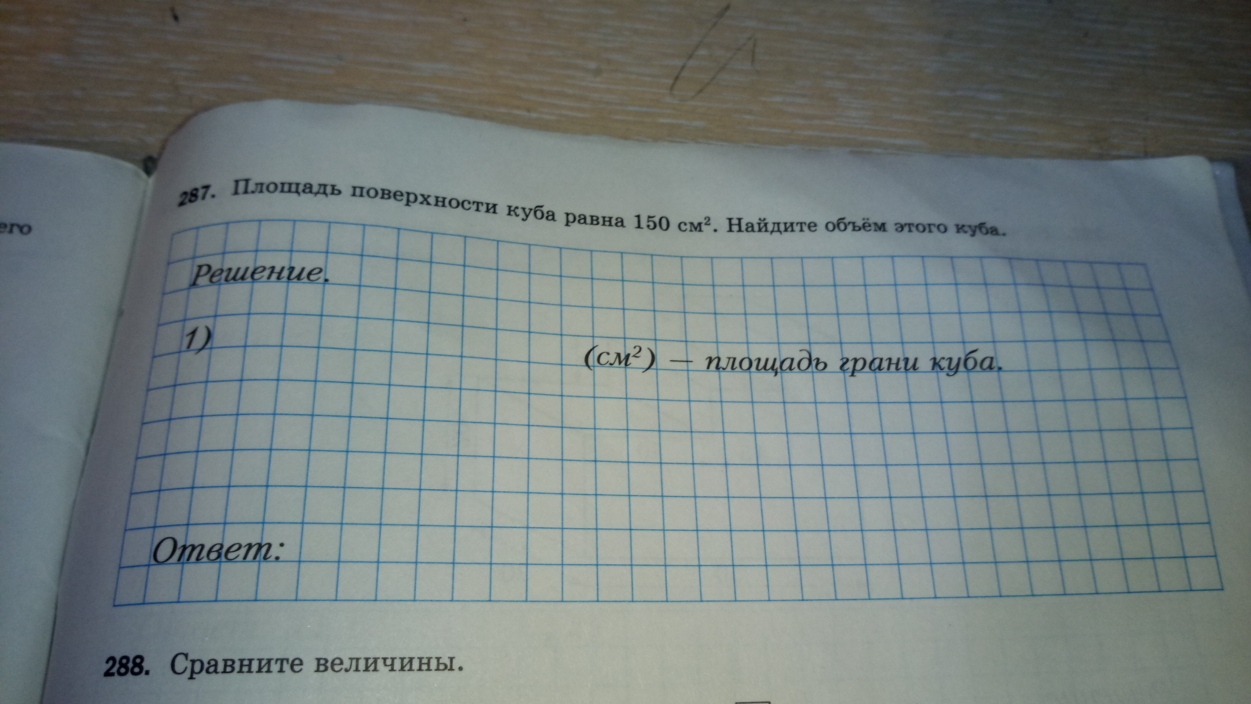 287. Площадь поверхности куба равна 150 см². Найдите объём этого куба.