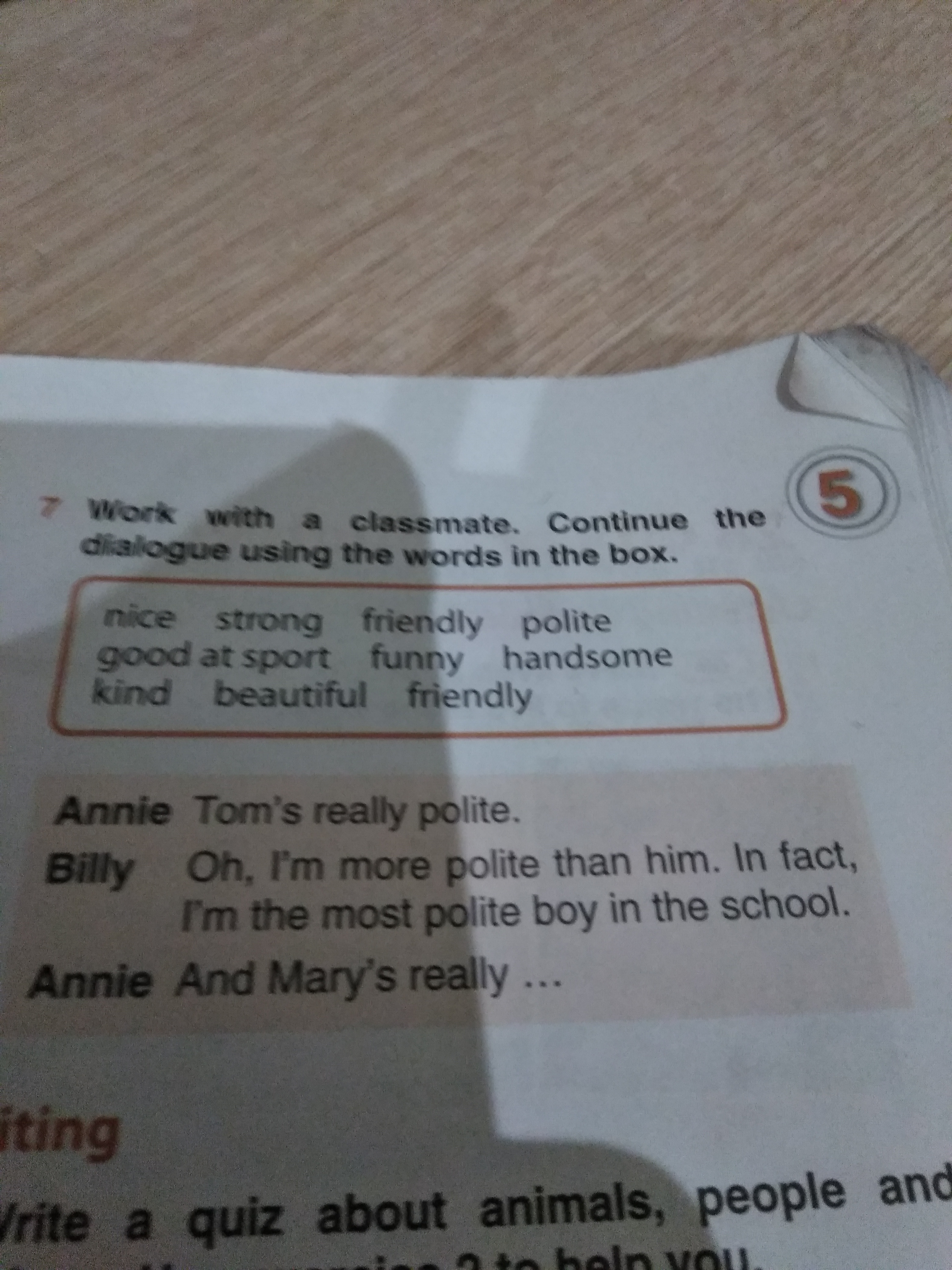 Перевод задания: "Работа с одноклассником. Продолжи диалог с помощью слов в коробке."