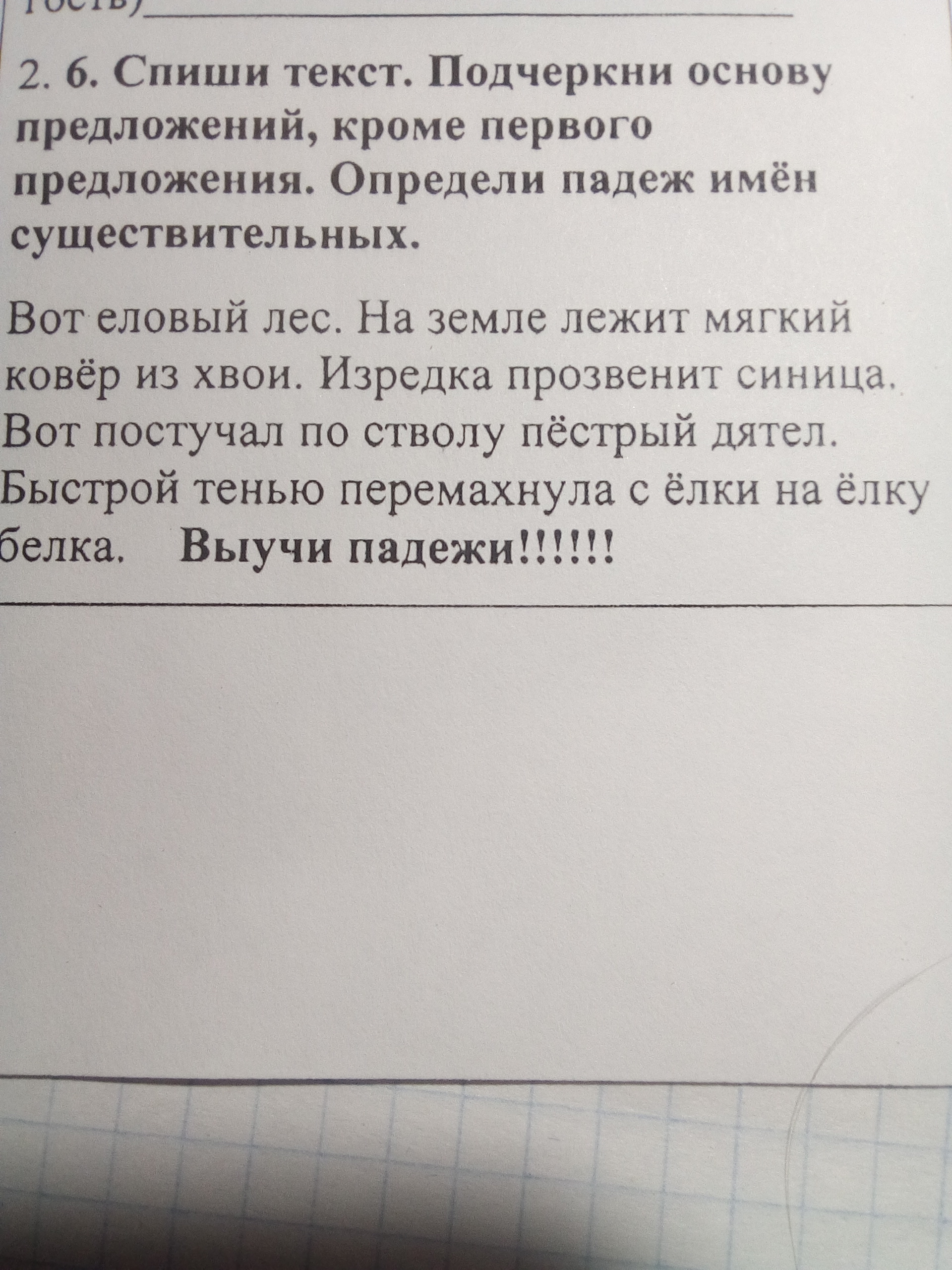 тенью-Тв.п., ёлки-Р.п., ёлку -Вин.п., белка-Им.п.))))