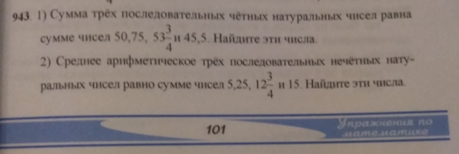 1) 50,75 + 53,75 + 45,5 = 150 - сумма трех последовательных четных натуральных чисел.