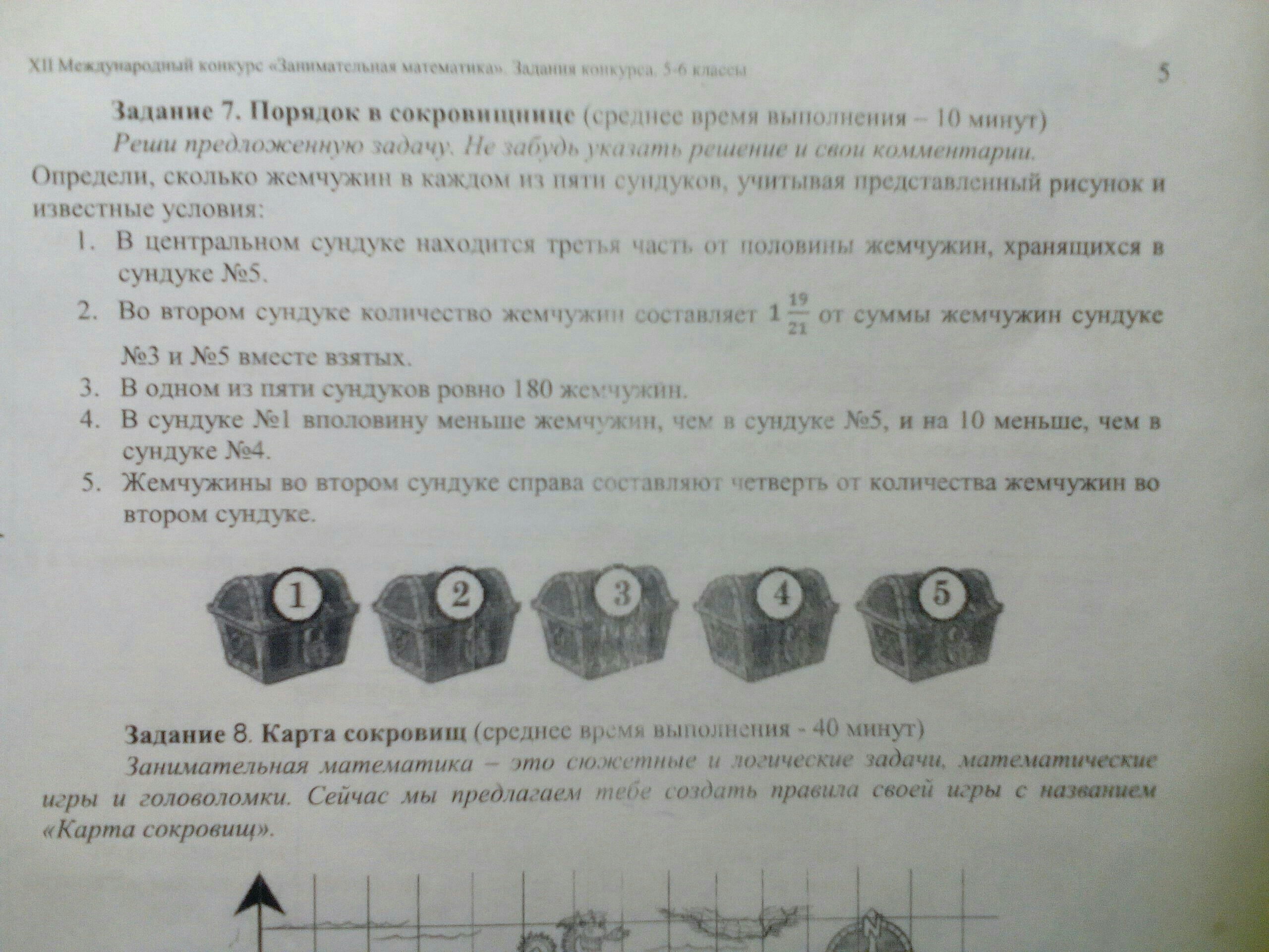 Значит в 5 сундуке было 180 жемчужин. Тогда