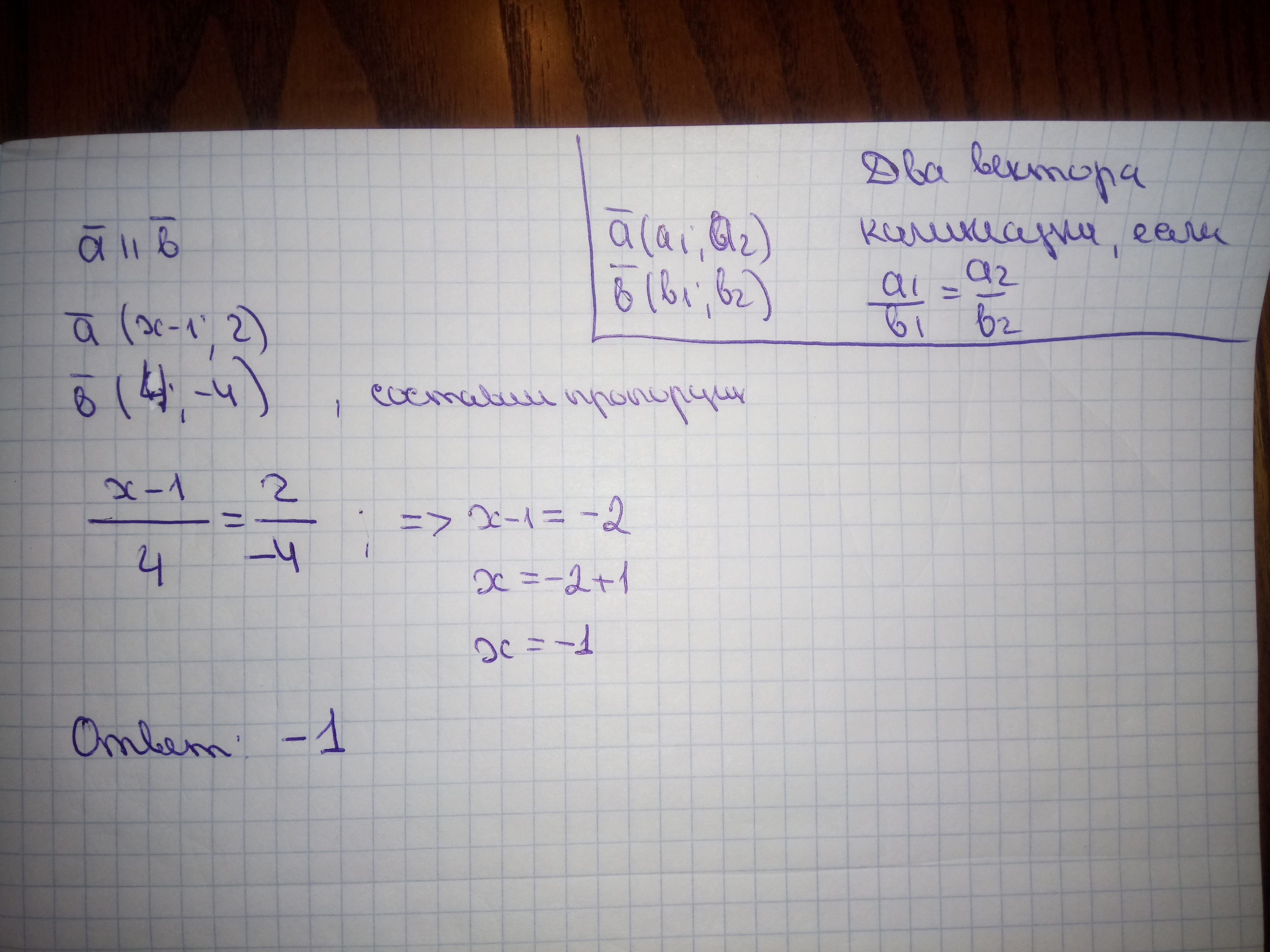 найдите значение х, при котором векторы а и b коллинеарны, если а (х-1;2) и b (4;-4).