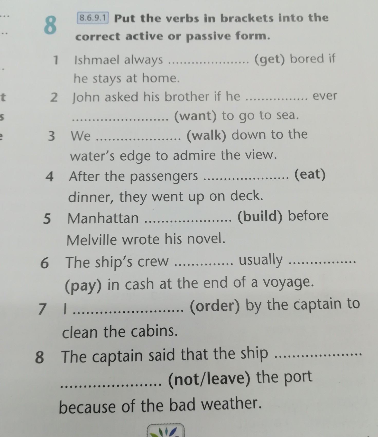 1 gets 2 had ever wanted 3 walked 4 had eaten 5 had been built 6 is usually paid 7 was ordered 8 didn't leave