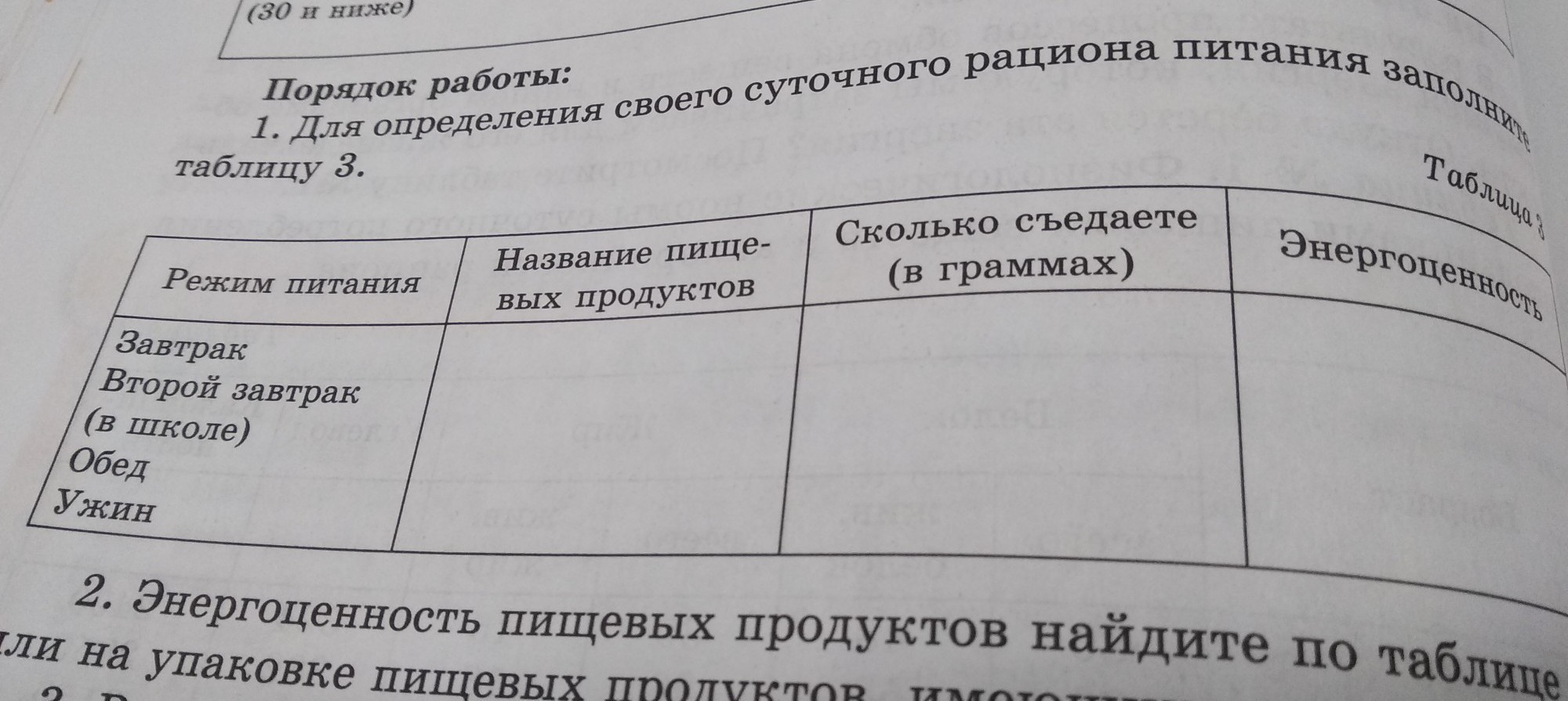 для определения своего суточного рациона питания заполните таблицу даю 20 баллов срочно