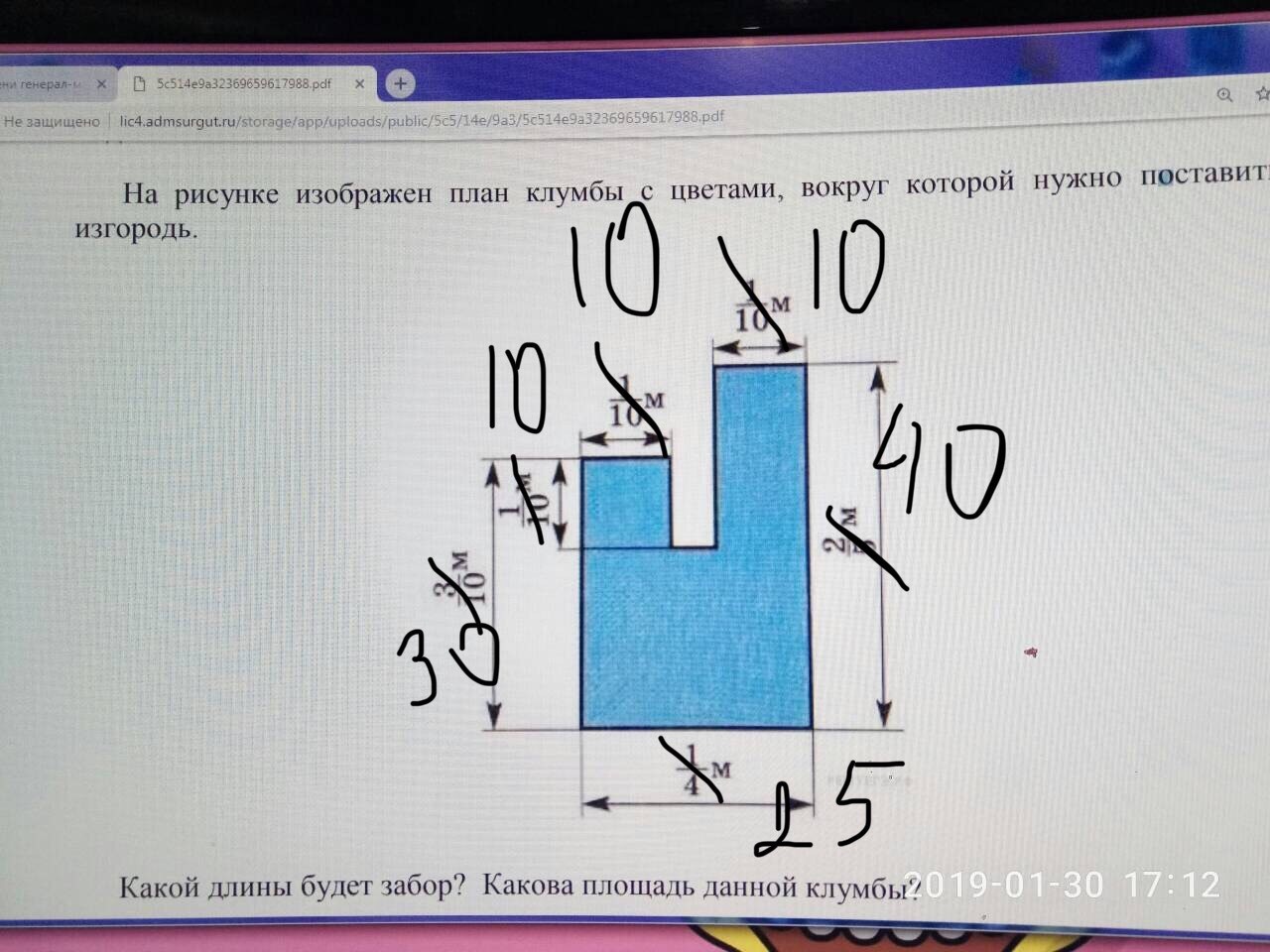 P = 30 + 10 + 10 + 5 + 20 + 10 + 40 + 25 = 150 м - длина забора