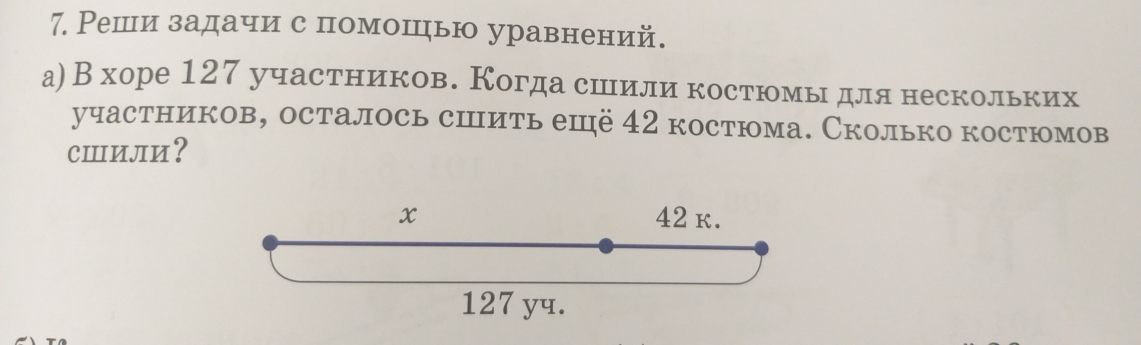 Пусть х шт костюмов сшили для участников. Осталось 42 костюма.