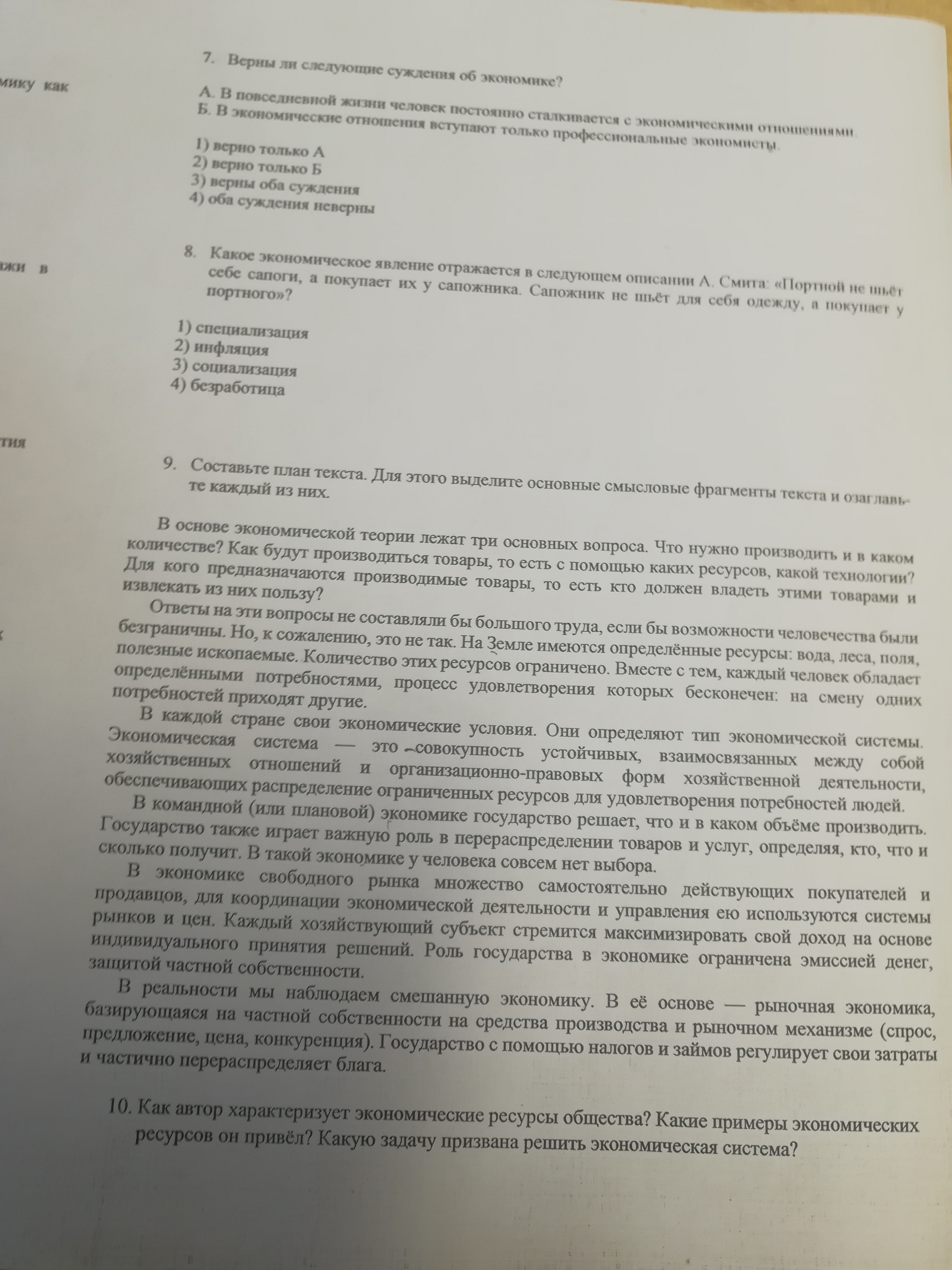 9-1) основные вопросы экономики;