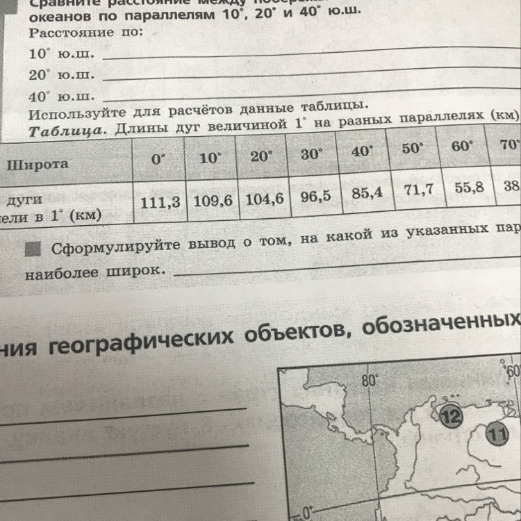 Сравните расстояние между побережьями Тихого и Атлантического океанов по параллелям 10 градусов, 20 градусов, и 40 градусов