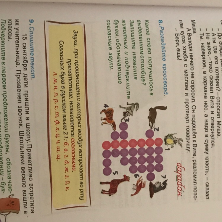 1 Заяц ,2 Барсук. 7Крот, 6Краб