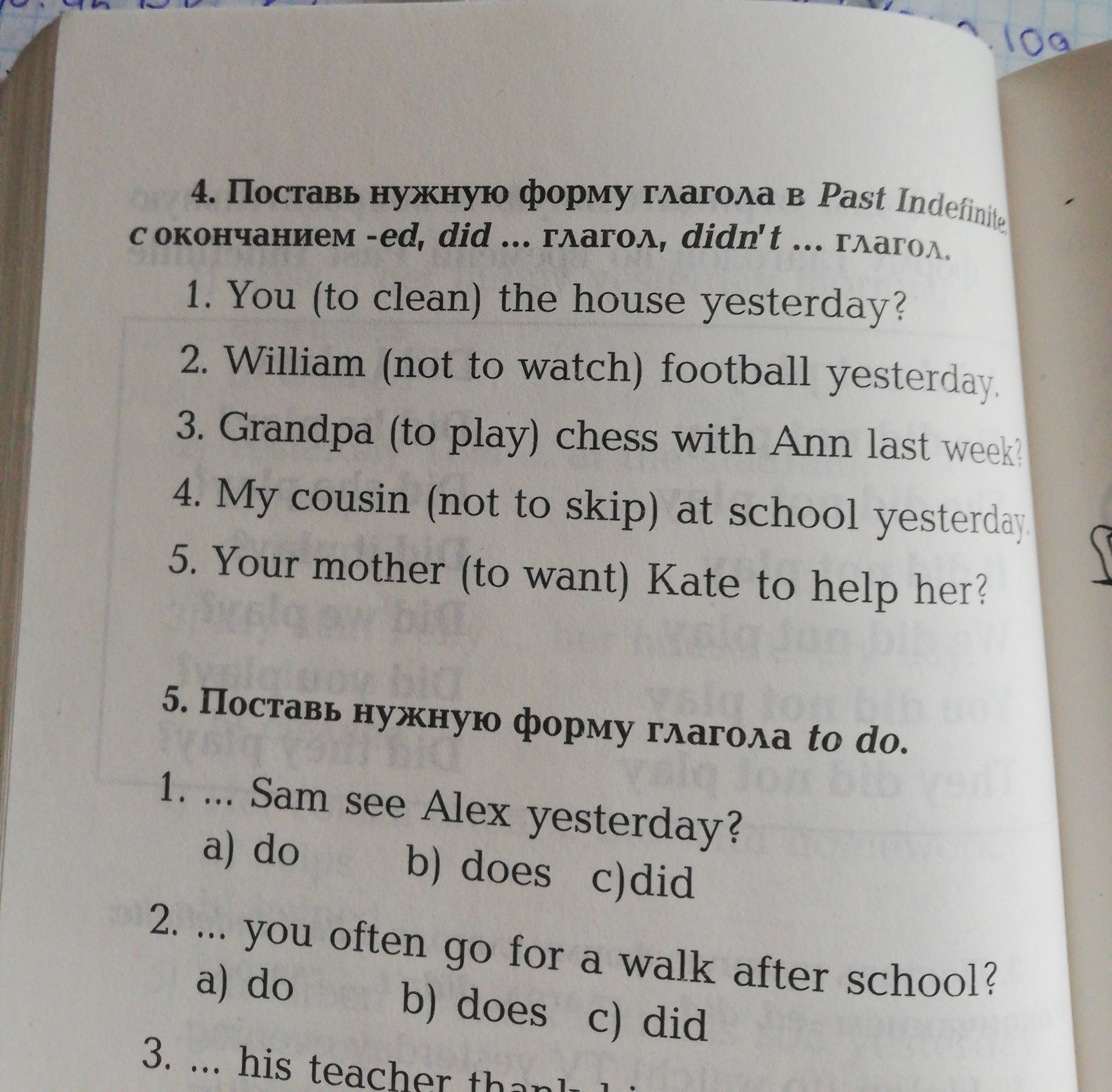 1. Did you clean the house yesterday?