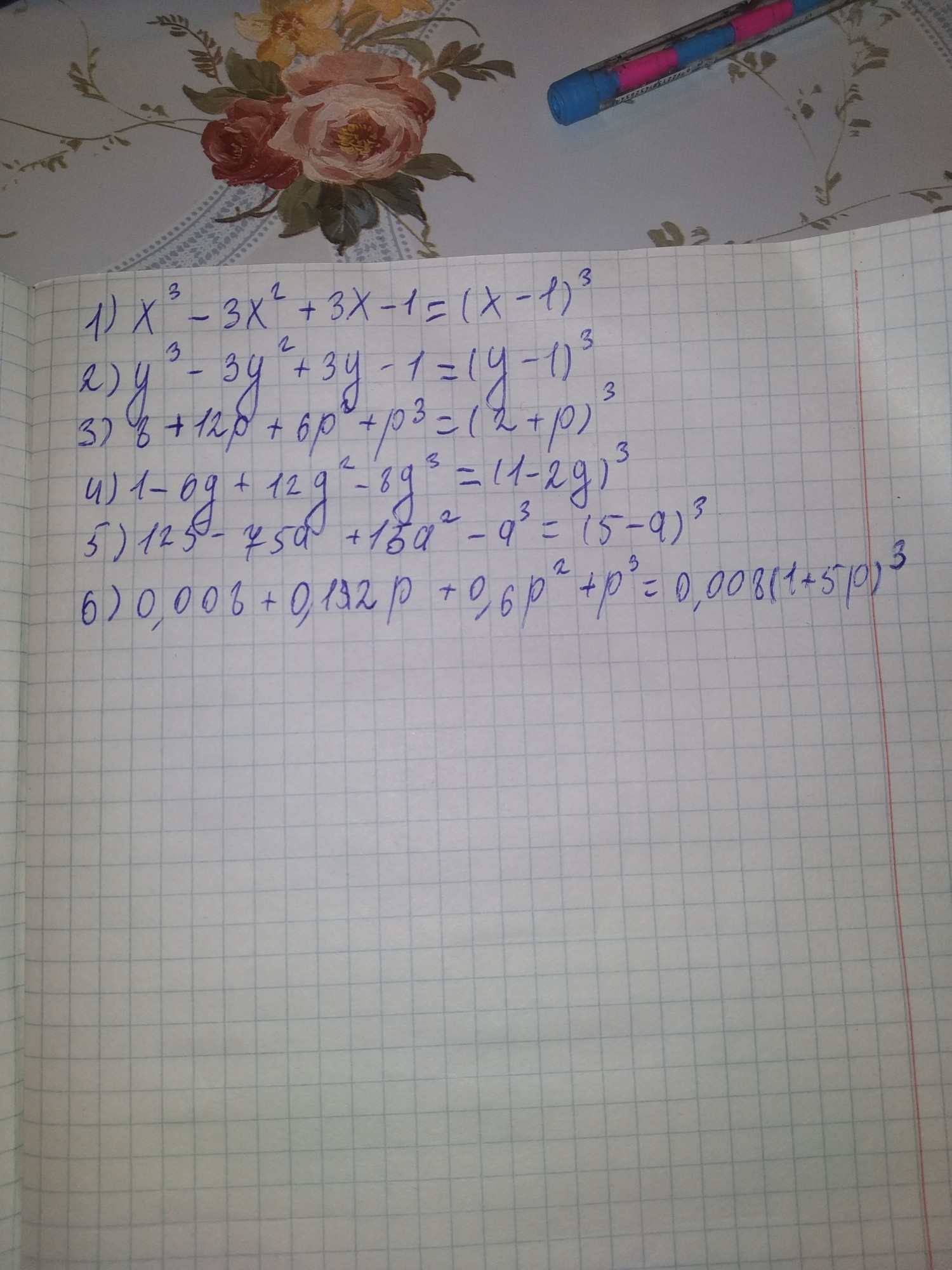 Представьте в виде куба двучлены, вот эти многочлены пожалуйста: