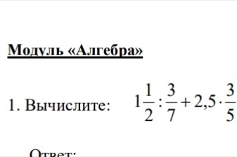 1 1/2:3/7+ 2,5*3/5 3/2:3/7+2,5=3/2*7/3=2/7;