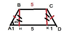 Найдите площадь равнобедренной трапеции с основаниями 5 см и 7 см., если угол при меньшем основании равен 135 0.