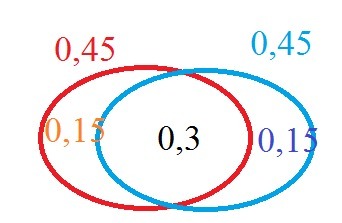0,15+0,3+0,15=0,6 - заняты оба или кто-то один