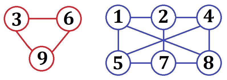 Можно особо не вдаваясь в теорию, просто глядя на граф, сказать, что города 1 и 9 между собой связей не имеют. А вот города 2 и 8 связаны, хоть и не напрямую, а с "пересадкой".