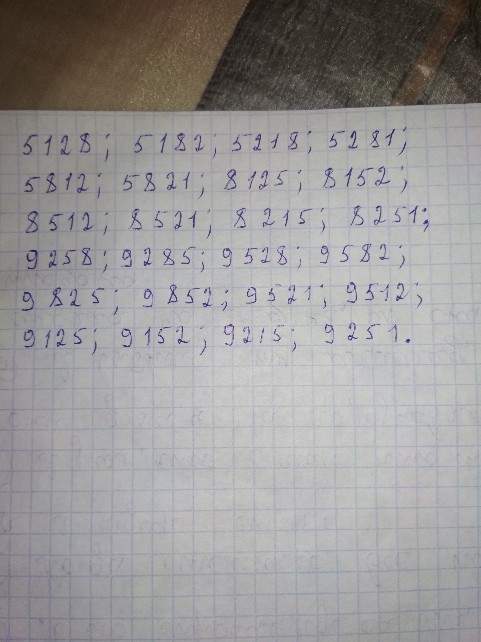 Даны цифры 1, 2, 5, 8, 9. Определите, сколько 4-значных чисел можно составить из них без повторений при условии, что все составленные числа должны быть больше 4000.