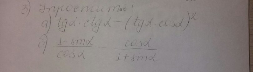 б.(1+sina * (1-sina) - cosa^2/1+sina*cosa = 1-sina^2-cosa^2/1+sina*cosa = 1-1/1+sina*cosa = 0/1+sina*cosa = 0