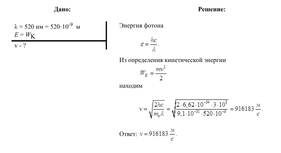 С какой скоростью должен двигаться электрон, чтобы его кинетическая энергия была равна энергии фотона с длиной волны λ = 520 нм?
