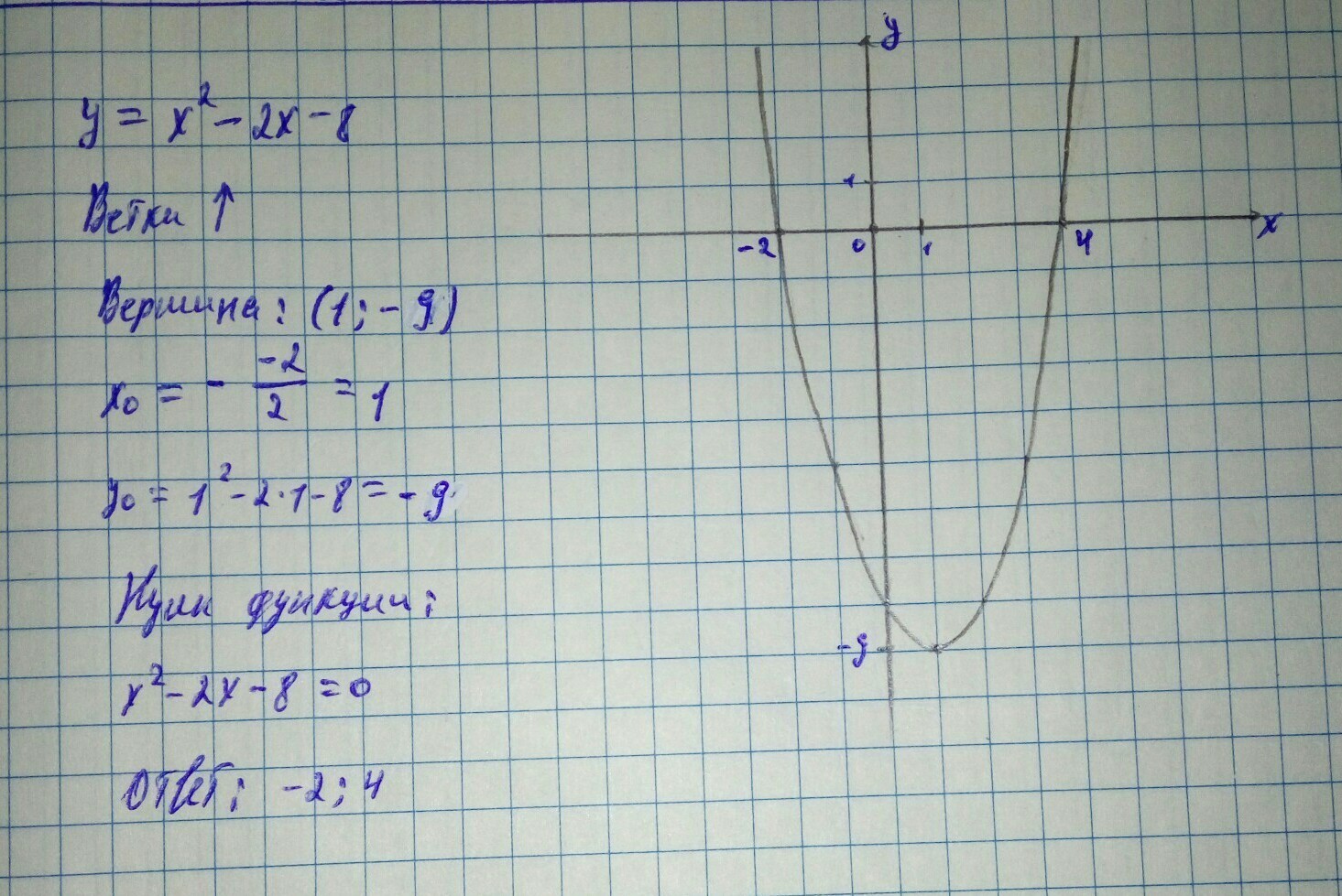 Решите графически уравнение х^2 - 2x - 8 = 0