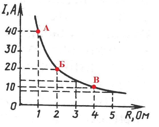 Это график зависимости силы тока от сопротивления проводника при неизменном напряжении.