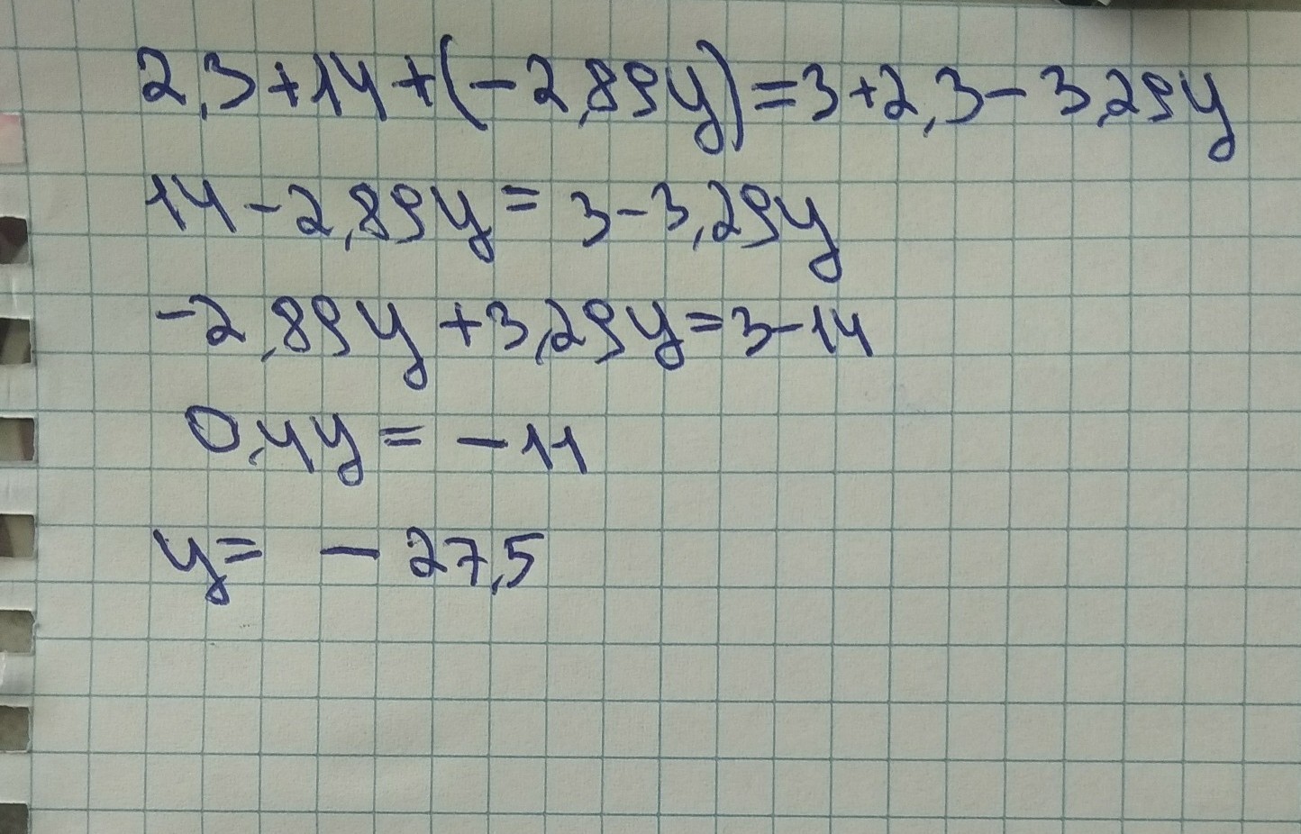 2,3 + 14 + (-2,89y) = 3 + 2,3 - 3,29y