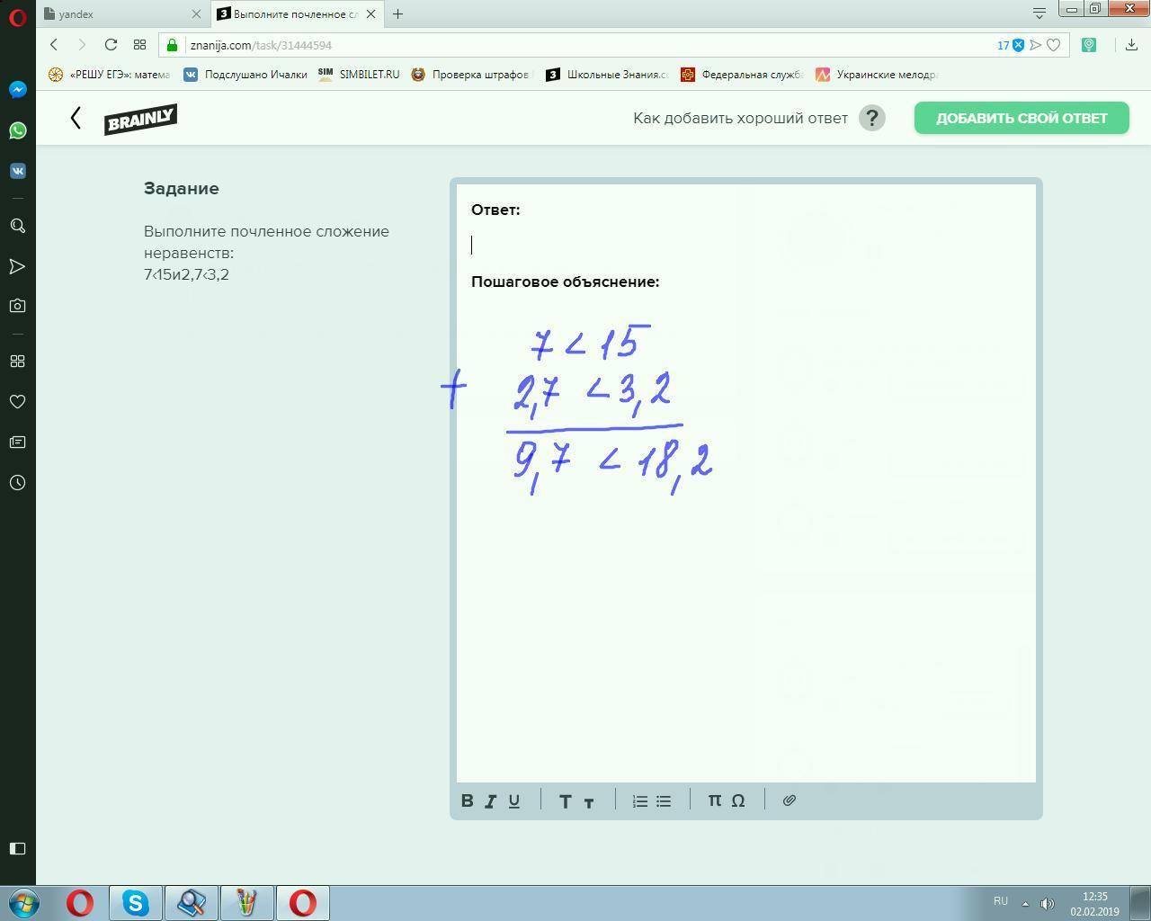 Выполните почленное сложение неравенств: