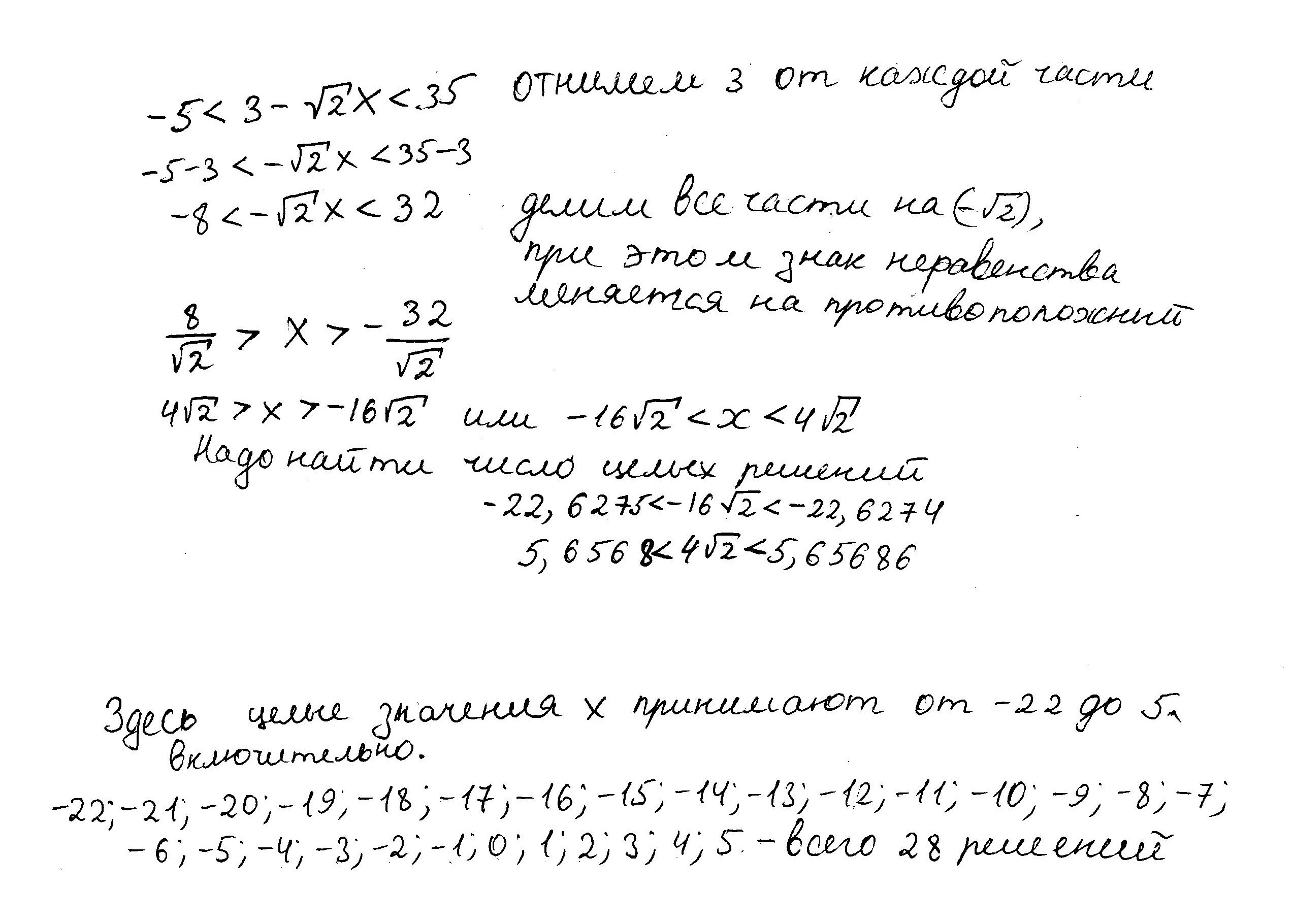Всего 28 целых решений.