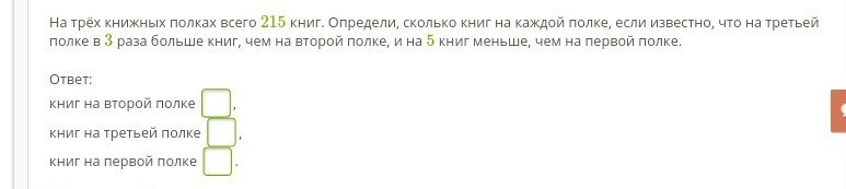 Ответ: на второй -30, на третьей -90, на первой - 95 книг