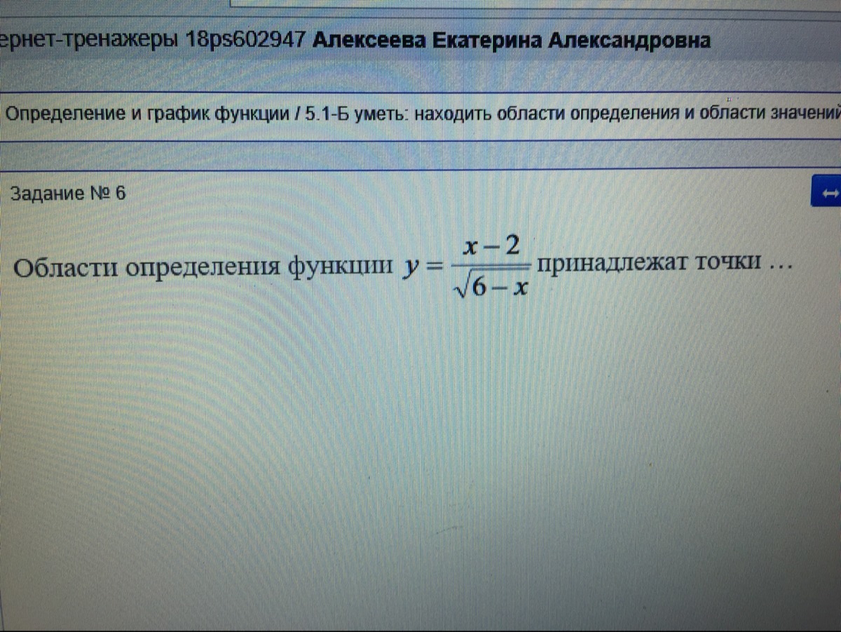 6-x≥0 так как выражение под корнем не может быть отрицательным.