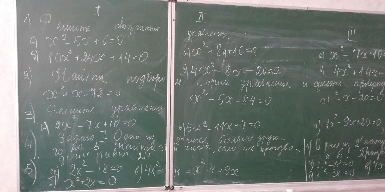 2) В втором: найти подбором корни и сделать проверку по формуле Виета.