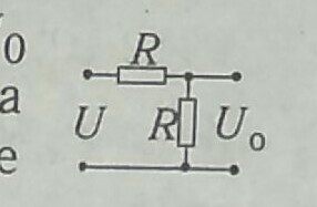 Чему равно выходное напряжение U_0 в электрической цепи, показанной на рисунке, если входное напряжение равно U?