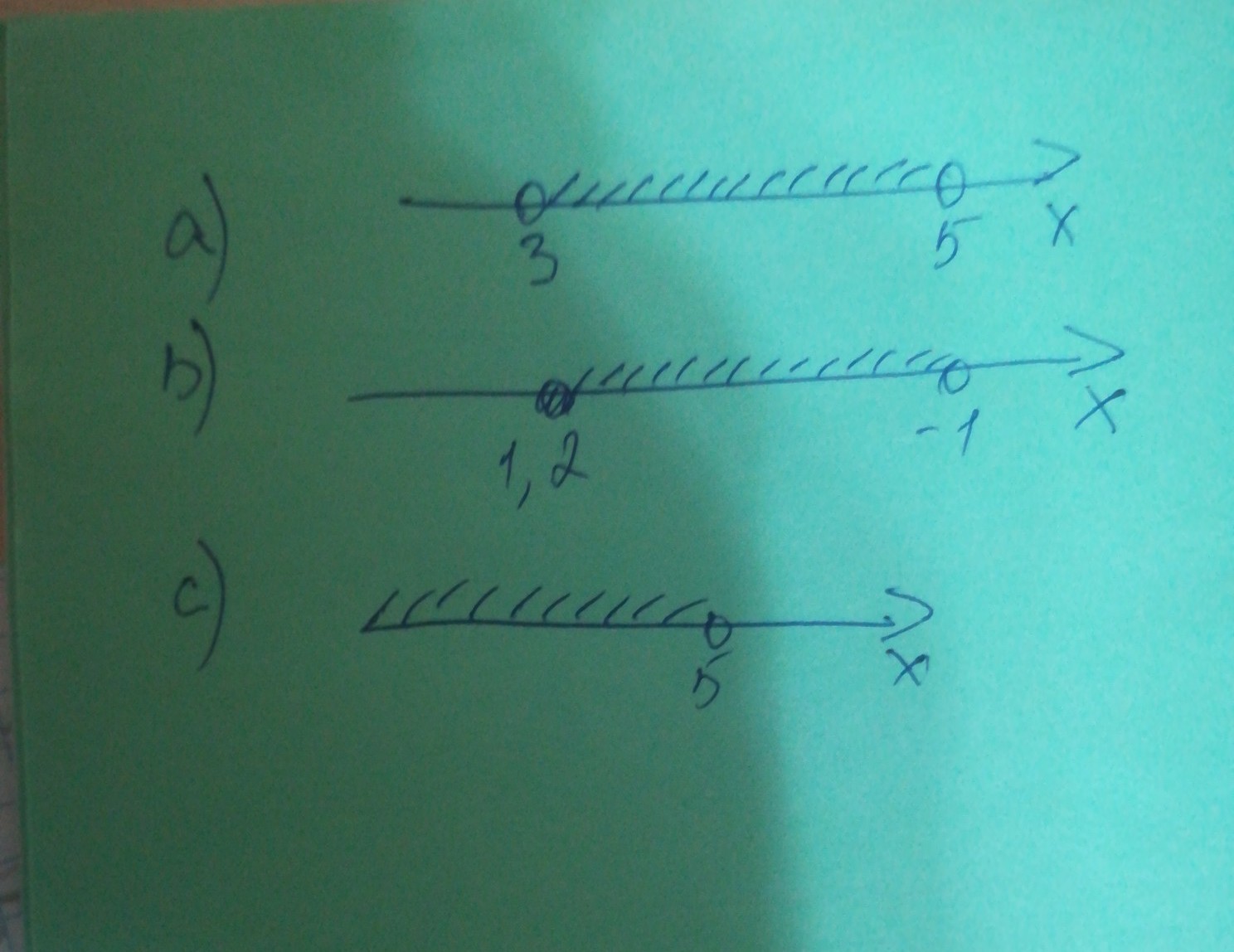 a) 3 < x <5; x ∈ (3; 5) b) числа на числовой прямой расположены неверно; c) x < 5; x ∈ (-∞; 5)