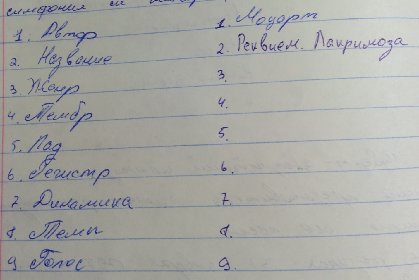 "Сделать анализ музыкального произведения -В.А. Моцарт. Реквием. Лакримоза в тетрадях по теории"