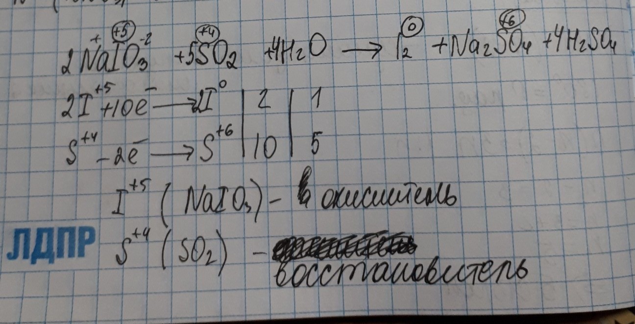 2NaIO3 + 5SO2 + 4H2O → I2 + Na2SO4 + 4H2SO4