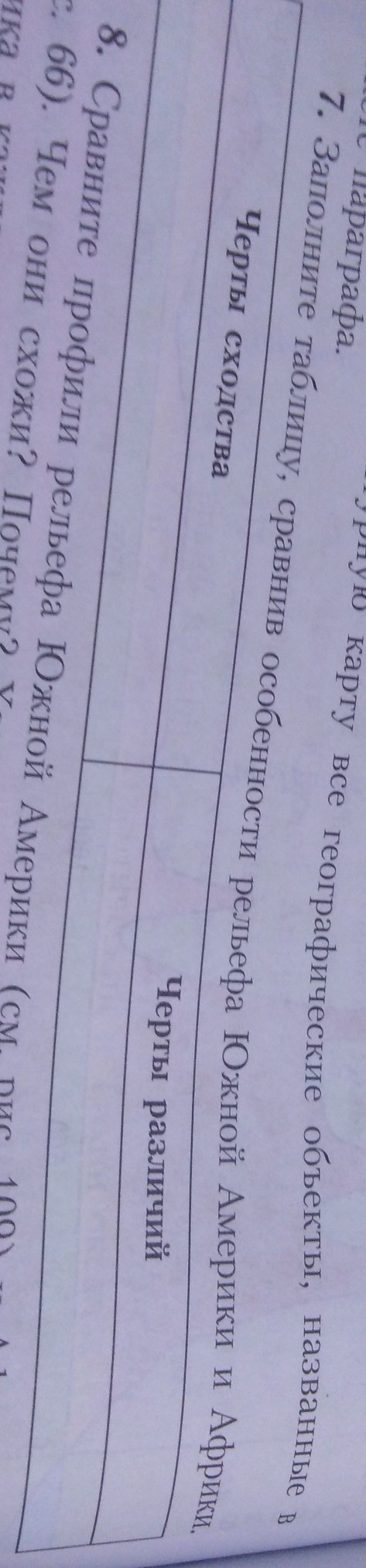 Черты различия: в Южной Америке есть относительно молодая горная система-Анды, чего в Африке нет, на северо востоке Южной америке, так же не найти в Африке