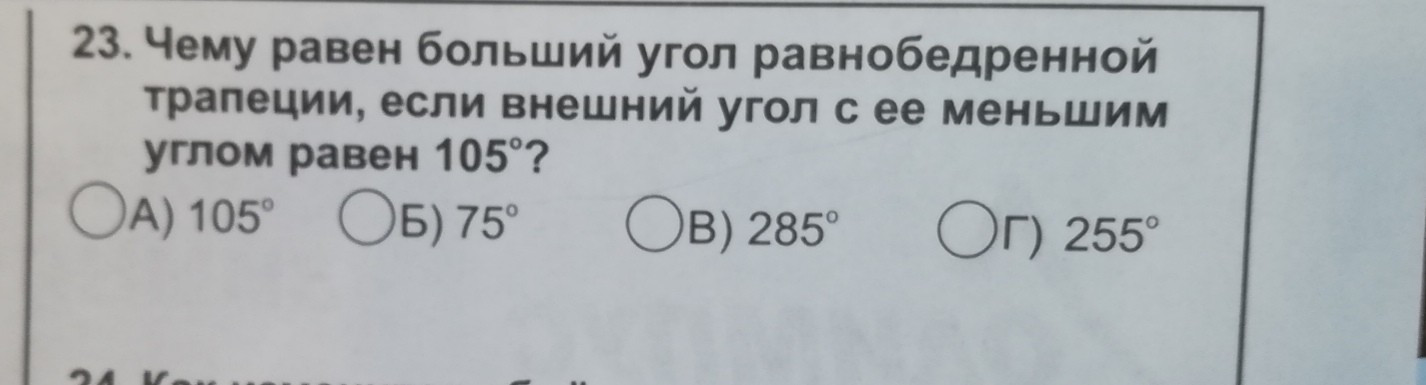Так как внешний угол с углом и больший угол трапеции равны(накрестлежащие)