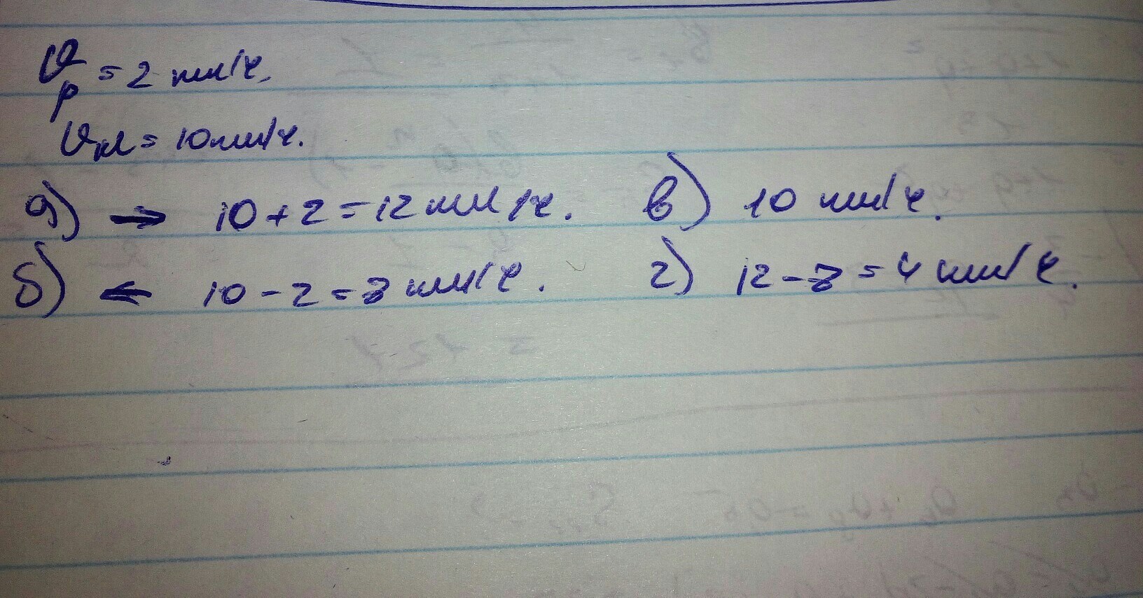 Скорость течения реки 2 км/ч. Собственная скорость лодки относительно воды 10 км/ч . Определите, с какой скоростью движется рулевой лодки: