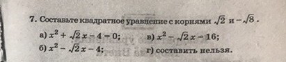 x^2+x√2-4=0 - верное уравнение, которое совпадает с ответом a.